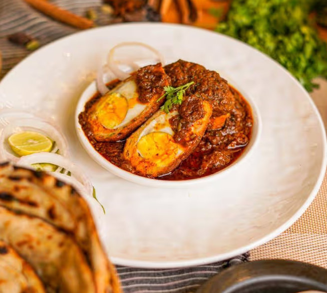 A flavorful and hearty egg dish cooked on a sizzling hot Tava for a satisfying main course option. Each bite is perfectly spiced.